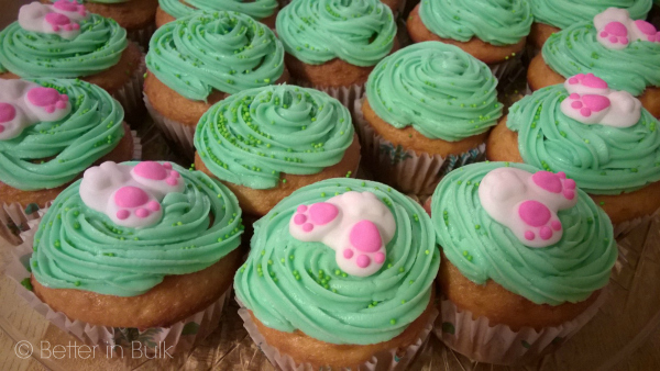 I was at Wal-Mart earlier this week, where I was able to pick up a few Bakery Crafts cupcake and cookie decorating kits that took my cupcakes to the next level. I had so much fun with my “Bunny Talk Cupcakes” at the Blue and Gold banquet that I made a fresh batch of cupcakes - this time a whole new recipe! - just for my family.