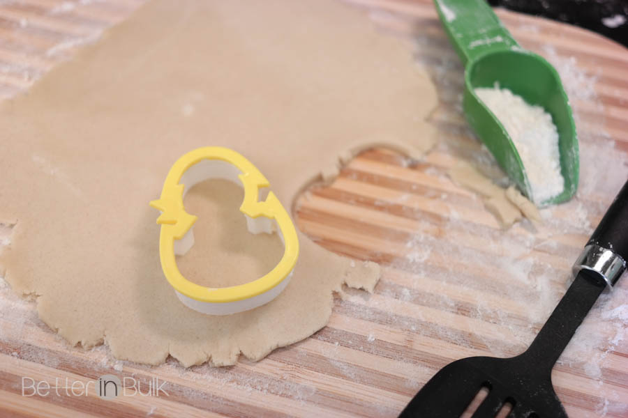 - Meanwhile, prepare sugar cookies. Roll out sugar cookie dough and cut out hatching chick shapes. Place on a cookie sheet and bake according to package or recipe directions.