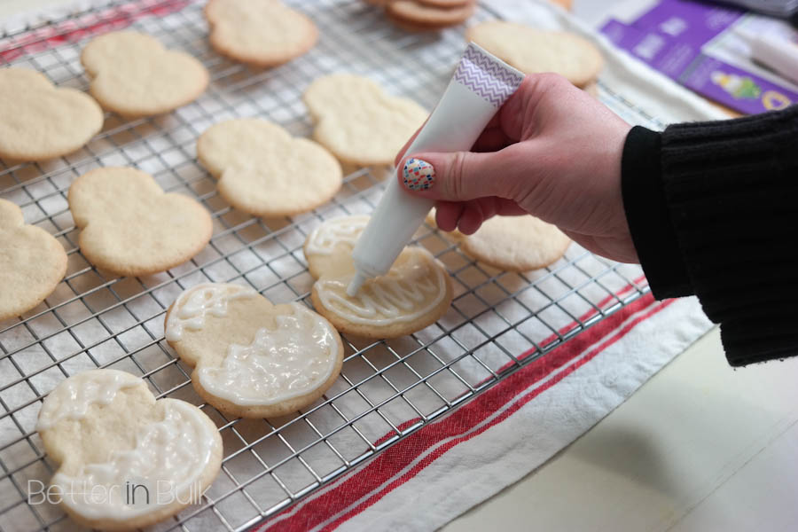 - To decorate: Start with cookies. Using the icing tubes in the kit, frost cookies (I just copied the look of the cookies on the package, although mine didn’t turn out half as cute!).